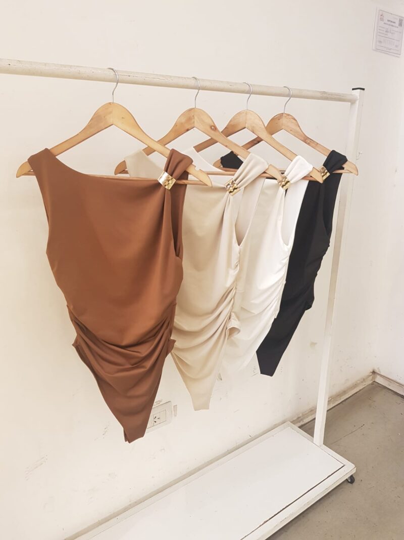 BODY CON HEBILLA Y FRUNCE DE MICROFIBRA