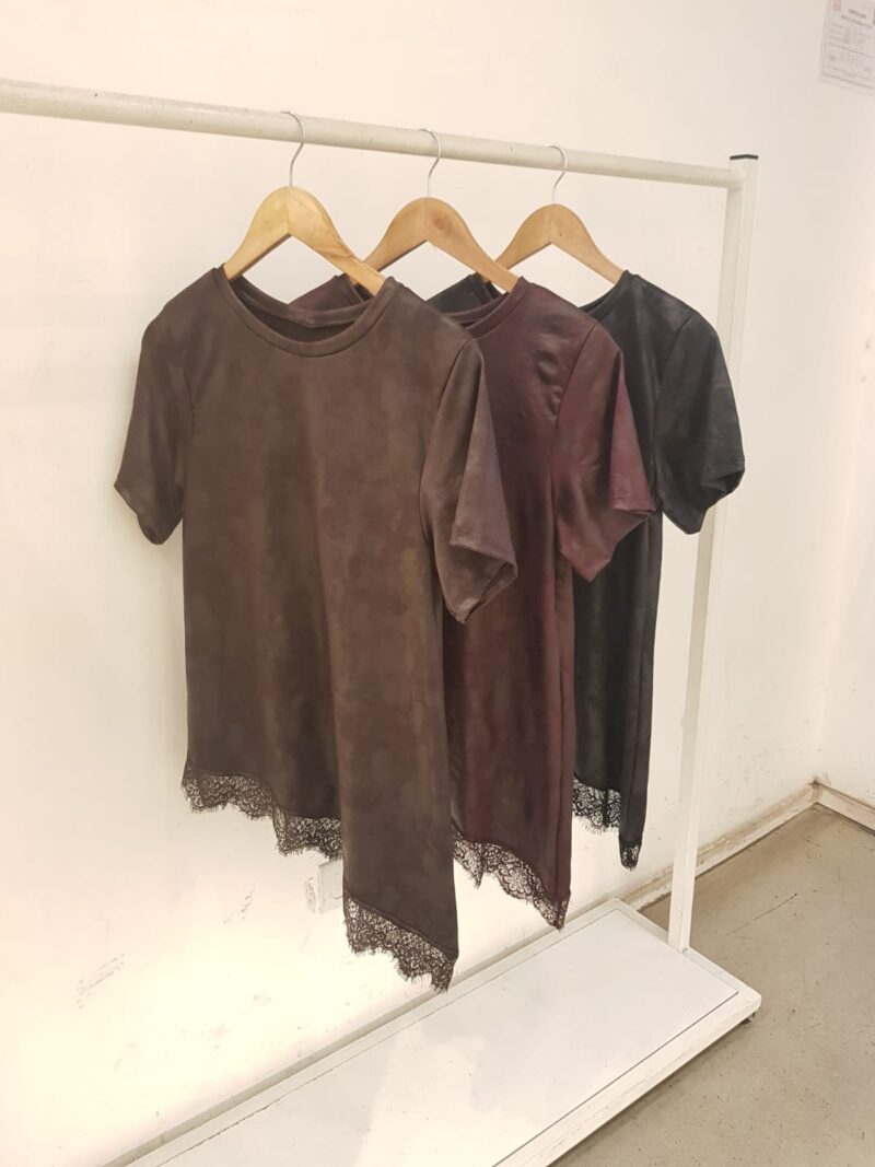REMERA IRREGULAR CON PUNTILLAS DE MICROFIBRA VINTAGE