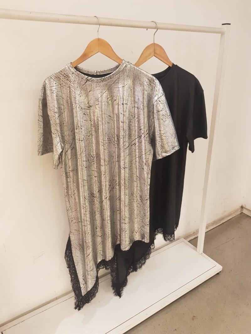 VESTIDO CREPE CON TEXTURA Y GLITTER