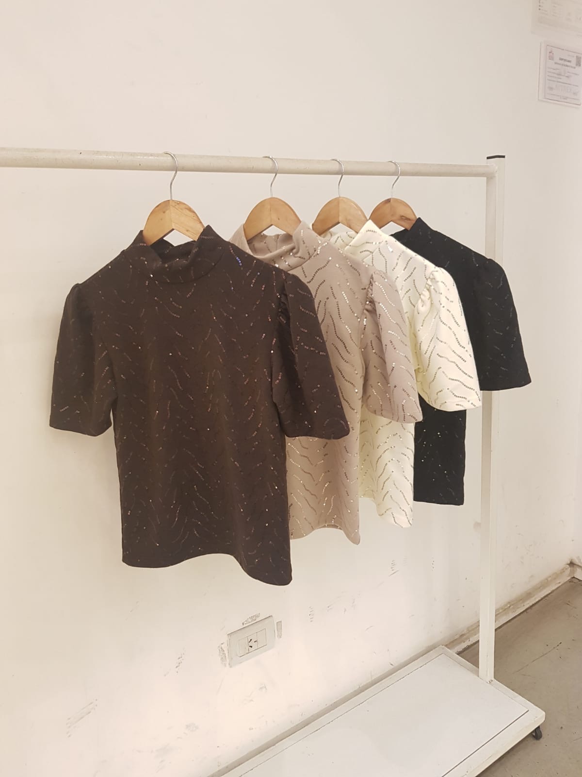 REMERA DE TUL CON LUREX CUELLO BOTE