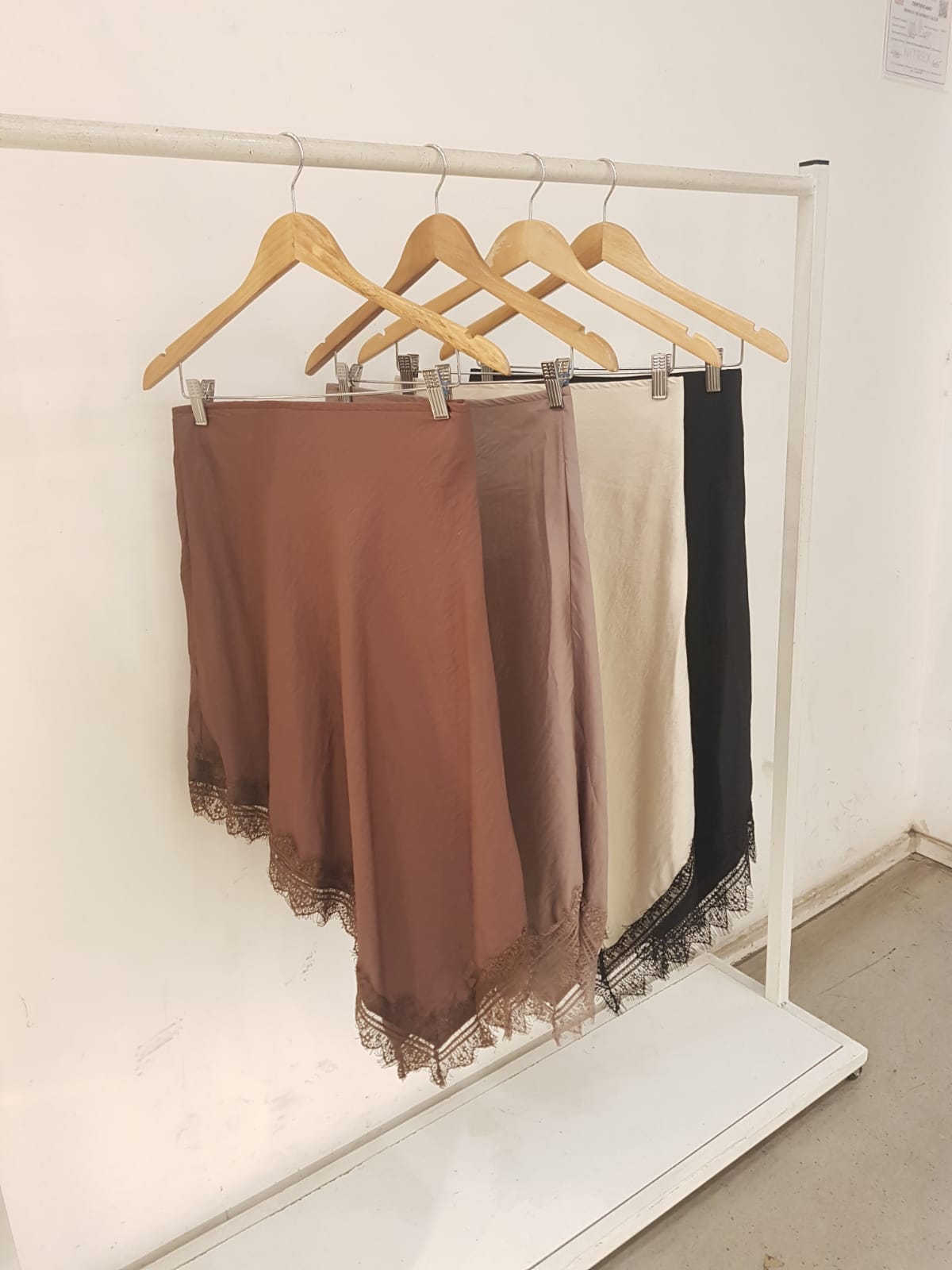 POLLERA DE SEDITA ARRUGADA CON PUNTILLA IRREGULAR PODES ARMAR TU OUTFIT CON LA MUSCULOSA GONNET ART3546