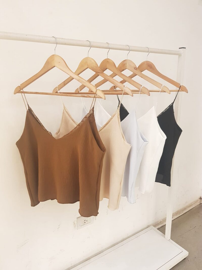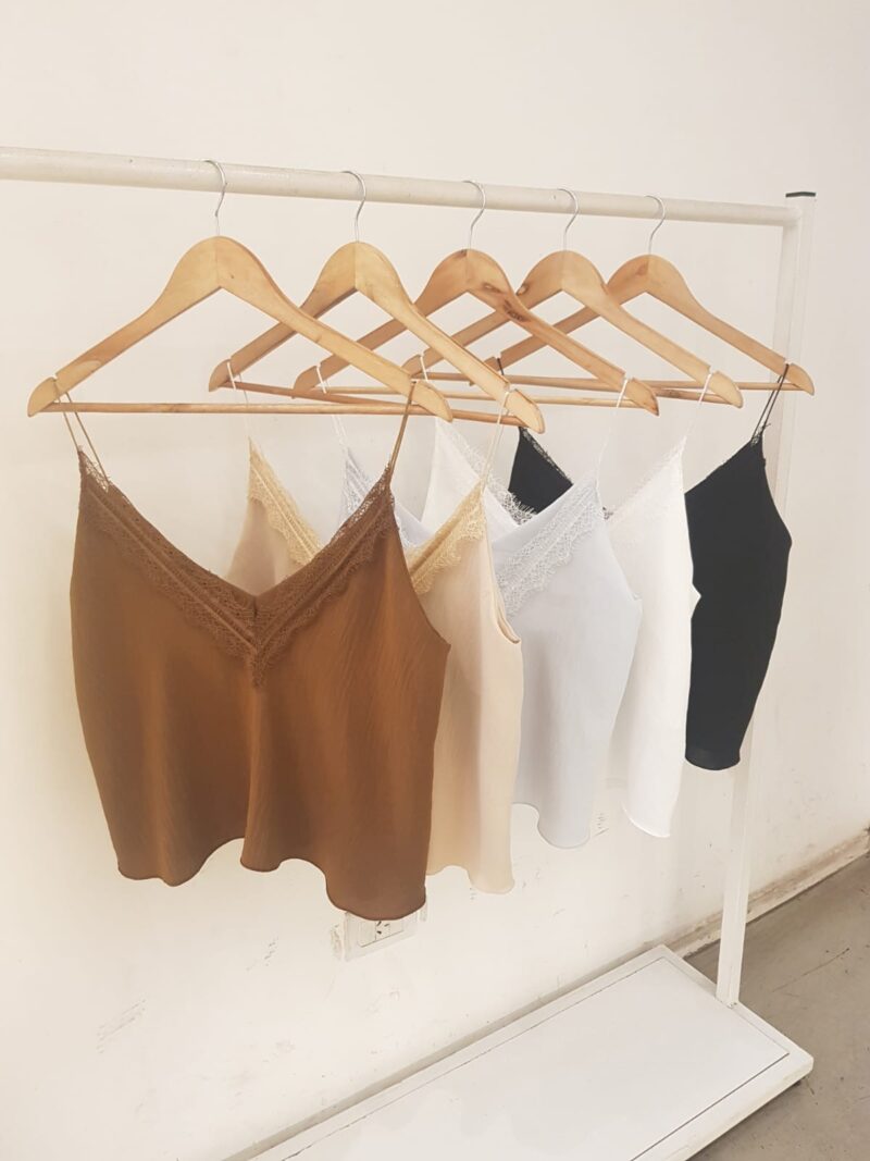 MUSCULOSA ESCOTE V PUNTILLA Y BRETEL CORDON RASADO