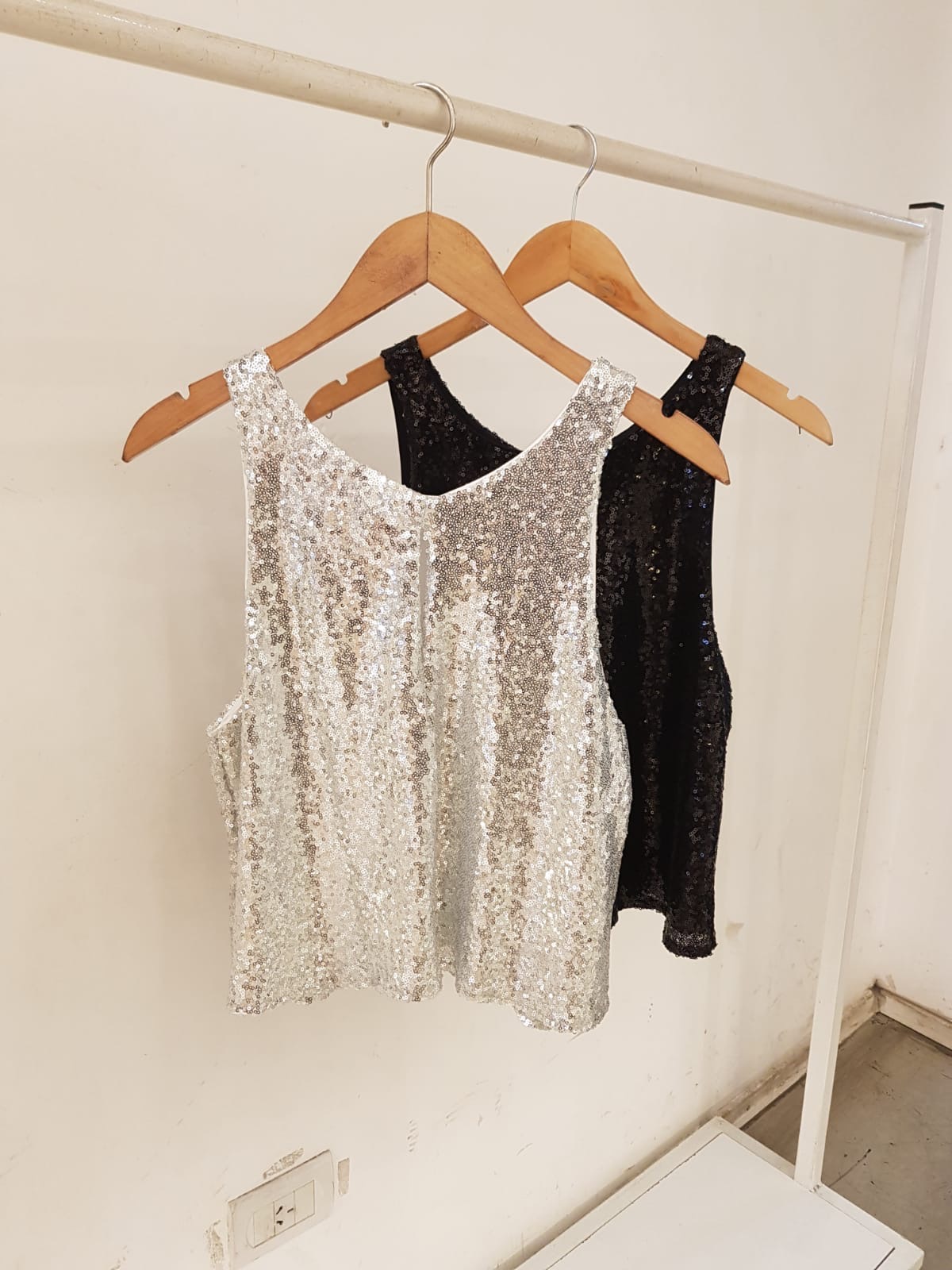 MUSCULOSA LENTEJUELA CON GOTA EN LA ESPALDA