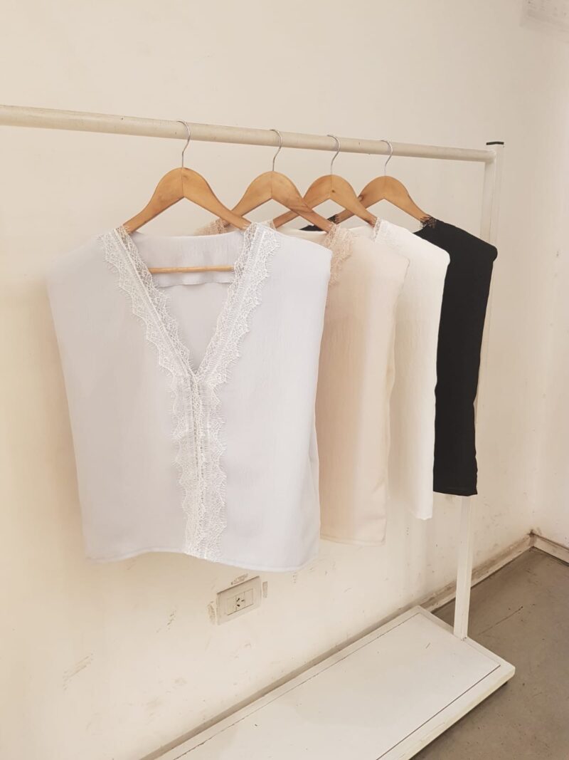BLUSA CON PUNTILLA Y HOMBRERAS