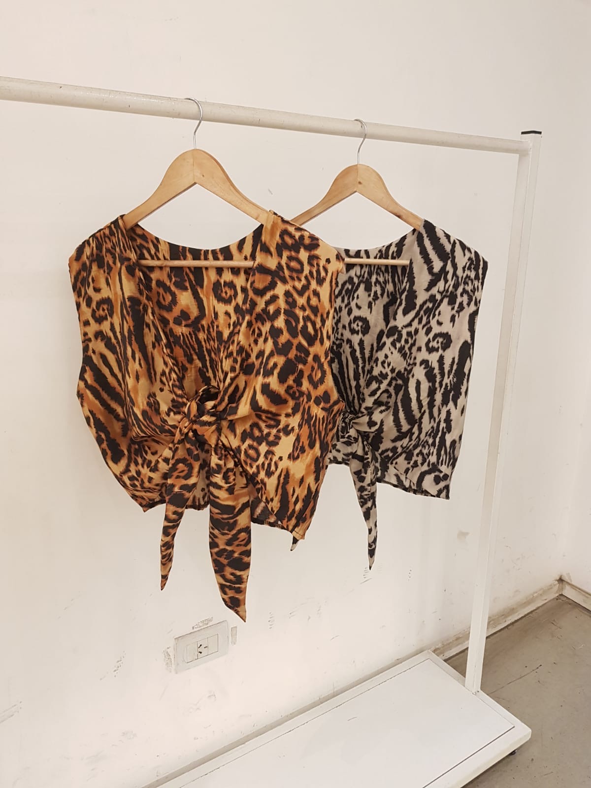 BLUSA SIN MANGA PARA ATAR EN CEY EFECTO ARRUGADO ESTAMPADA