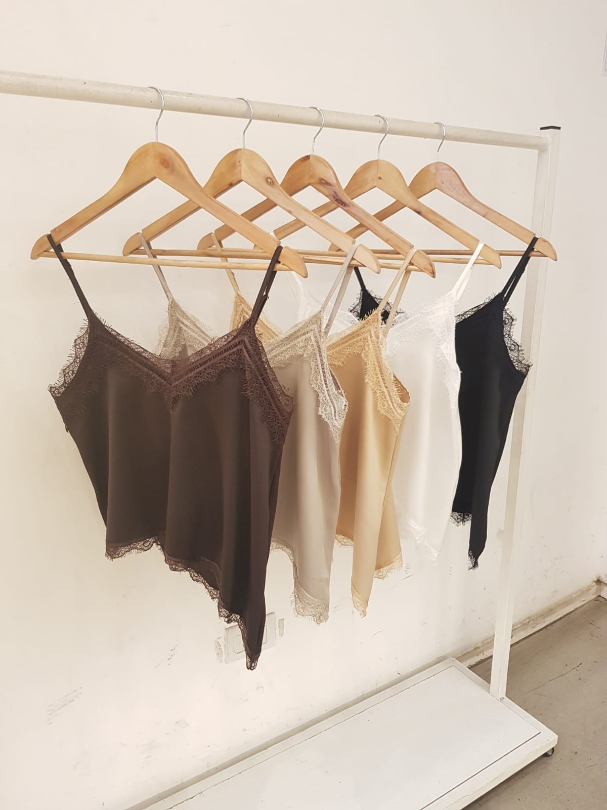 MUSCULOSA LENCERA IRREGULAR DE SEDITA CON REGULADORES EN EL BRETEL