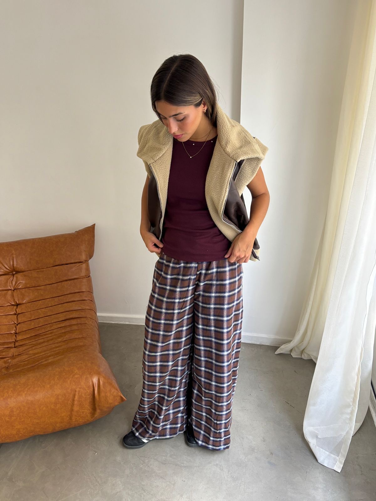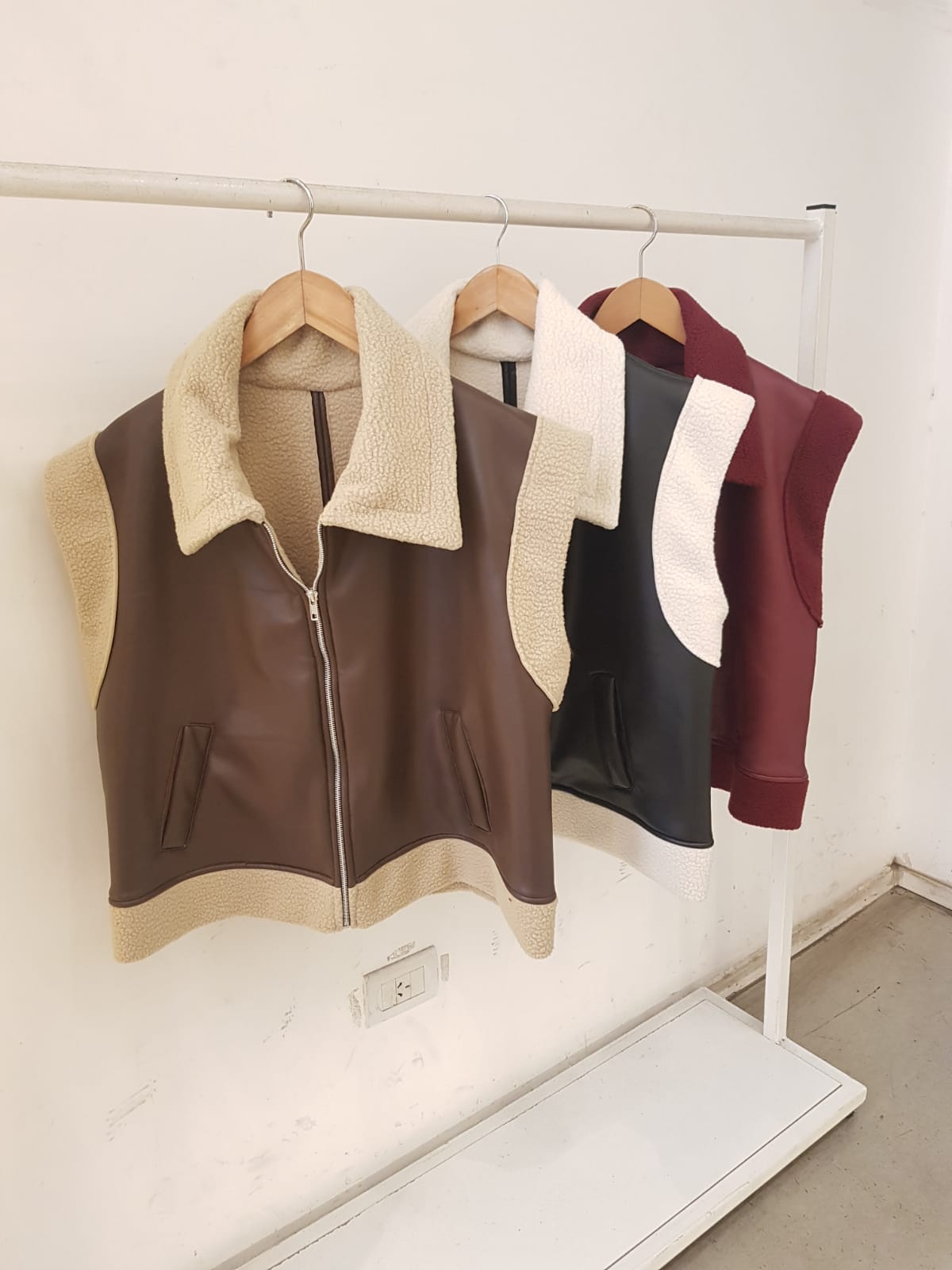 CHALECO PIEL SINTERICO CON CORDERITO OVERSIZE