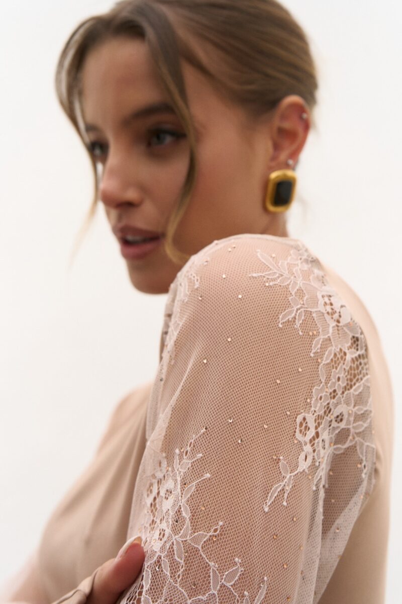 BODY CUELLO REDONDO MANGA TUL STRASS