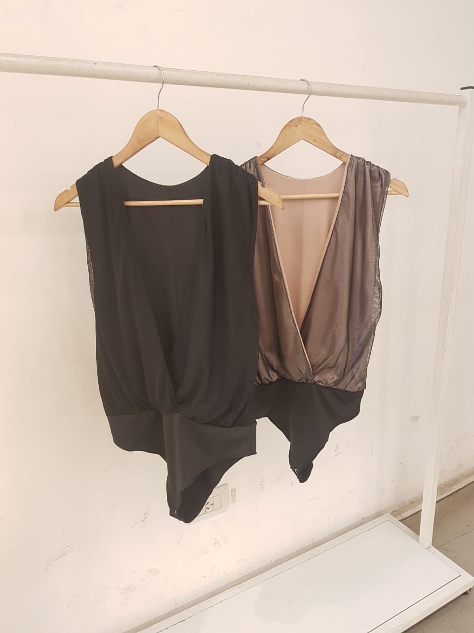 BODY CRUZADO SIN MANGA DE MICROFIBRA CON TUL