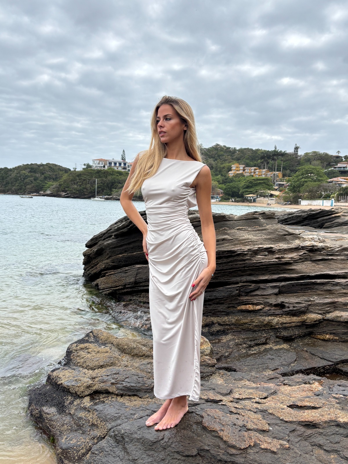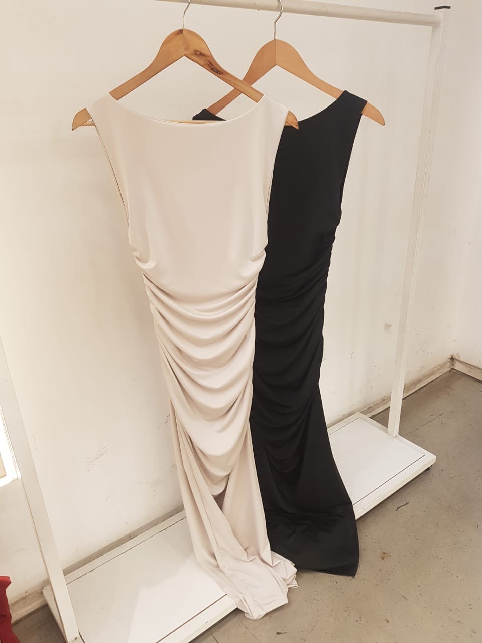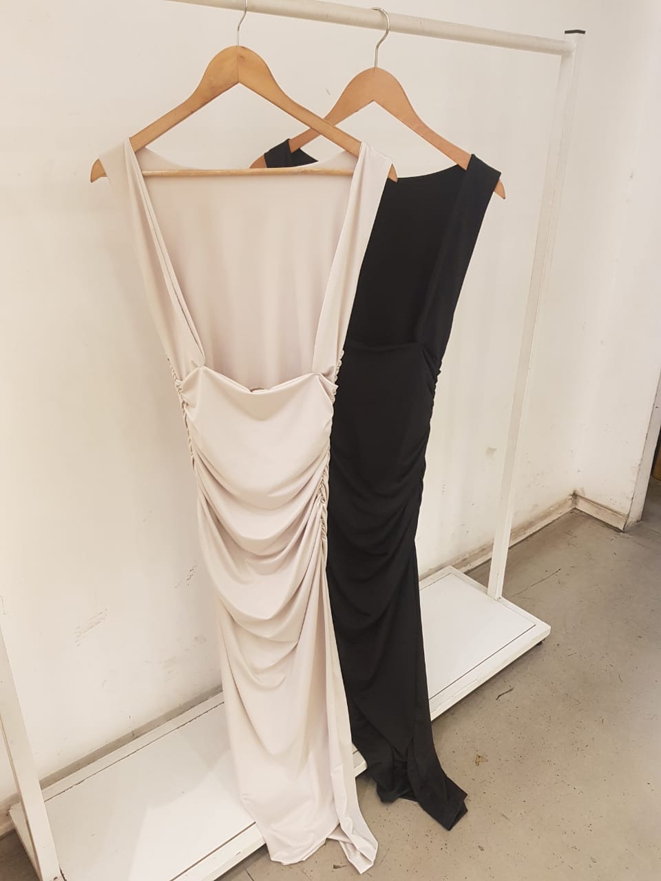 VESTIDO LARGO DE MICROFIBRA CON FRUNCES