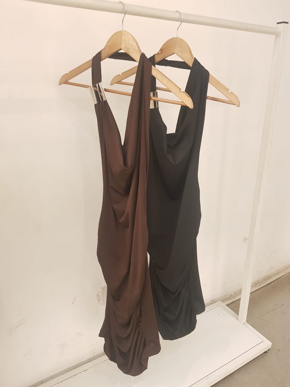 VESTIDO BUCHE CON HEBILLA DE MICROFIBRA CORTO