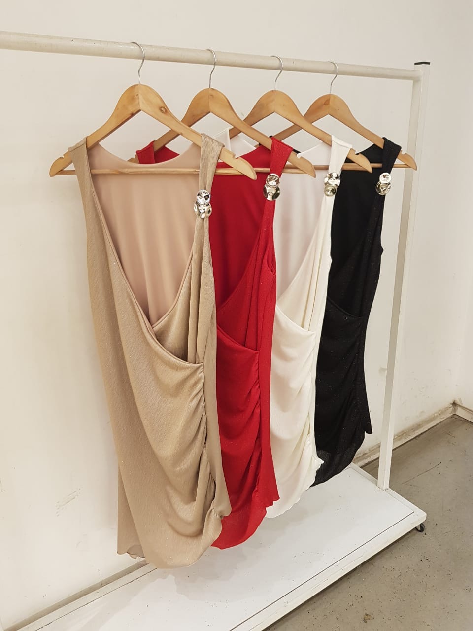 VESTIDO CRUZADO CON HEBILLA DE TEXTURA NOCHERA