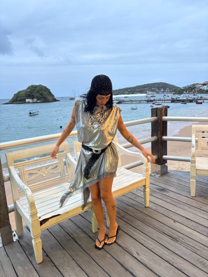 $41,800.00VESTIDO DE LENTEJUELA CRUZADO CON FUNCES Y MANGA LARGA CON ABERTURAS